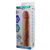 Características: Está confeccionada en suave TPR color piel, mide 19.5 centímetros de largo total, el diámetro de su glande es de 4 centímetros y el largo de su extensor es de 7.6 centímetros. Se ajusta al tamaño del pene.